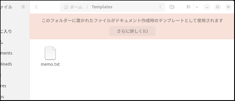 「Templates」フォルダの中に「memo.txt」が置かれました。
