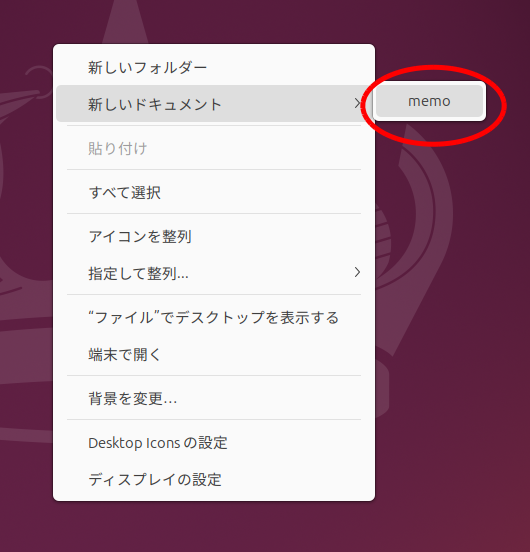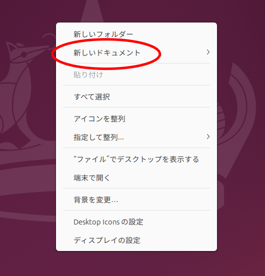 でもUbuntuで同じことをしようとした時、「新しいフォルダ」は作れても「新しいテキストファイル」は選択肢にありません。