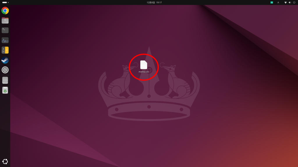 「touch memo.txt」とコマンドを打ちます。「memo.txt」は呼び出したときのテキストファイルの名前になるので、本当は好きな名前でいいです。