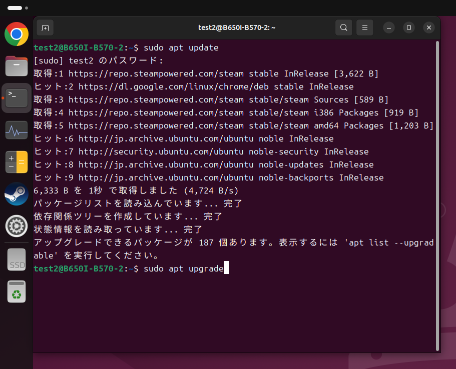 アプリセンターを使うのがWindowsユーザーにはわかりやすいでしょうが、せっかくLinuxをつかっているので、ここはあえてコマンドでインストールしていきます。