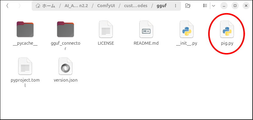 カスタムノード「gguf」の「pig.py」を書き換えます