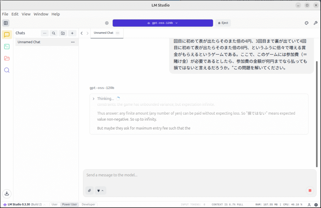 いつも使っているChatGPTですが、あまり公開したくない情報を取り扱う時なんかは、LMStudioを使うのも手かもしれませんね。