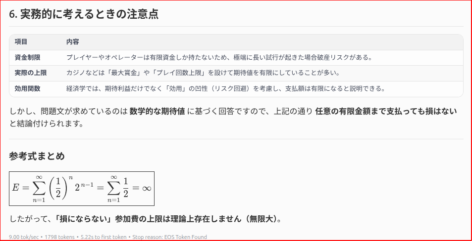 とはいえ、gpt-ossは「オープンソースモデルとしては優秀だが、トップ商用モデルと並ぶというわけではなく、“中位~やや上位”の位置付け」という評価もあるみたいなので、ChatGPTの代わりになるかというと、「日常会話・カスタムチャットボット用途」であれば・・・、といったところなのかもしれません。