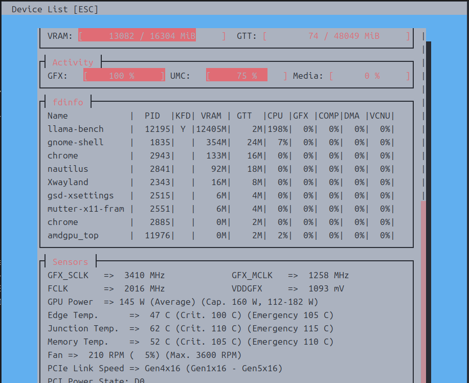 sudo usermod -aG video $USERとすれば、ROCm(と、グラフィックスドライバ)のインストールは完了です。