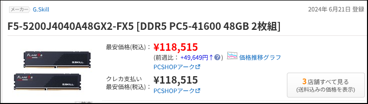 自作界隈では、メインメモリの値段が上下するのはよく知られている事ですが、ここまで跳ね上がるのはさすがにめずらしいです。