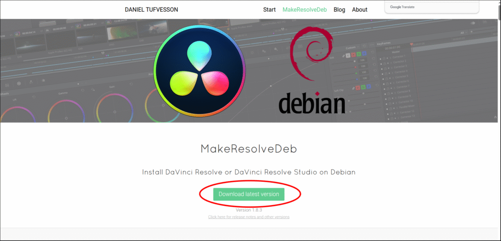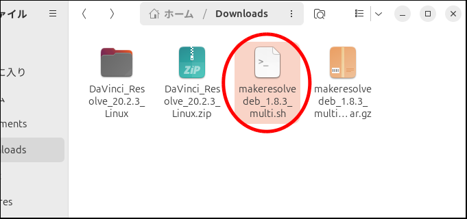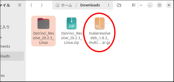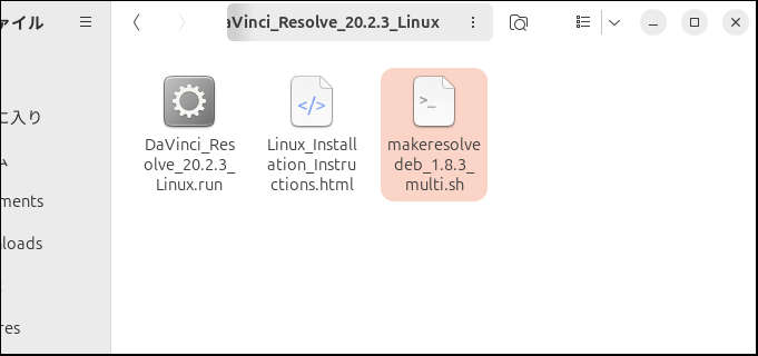 上記リンクから、「MakeResolveDeb」をダウンロードします。