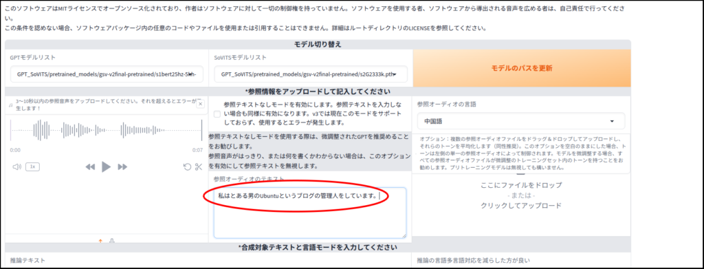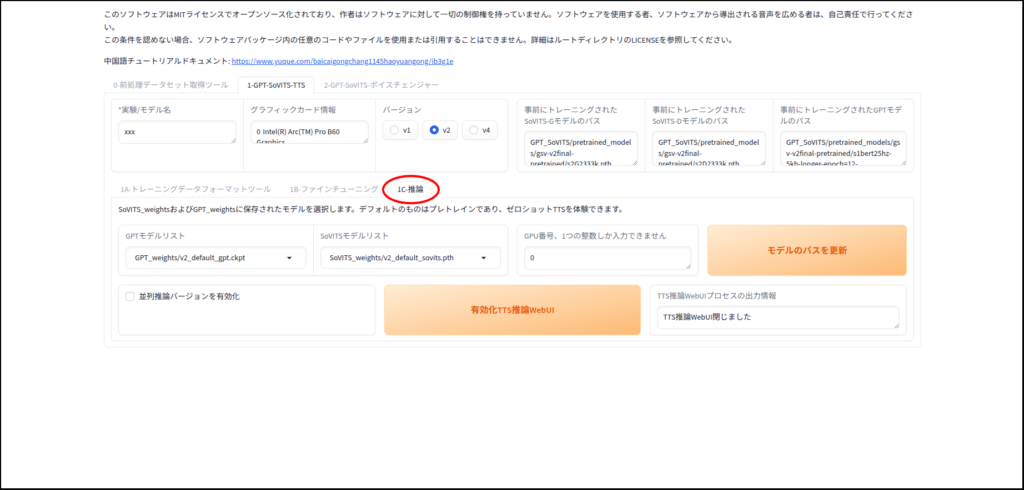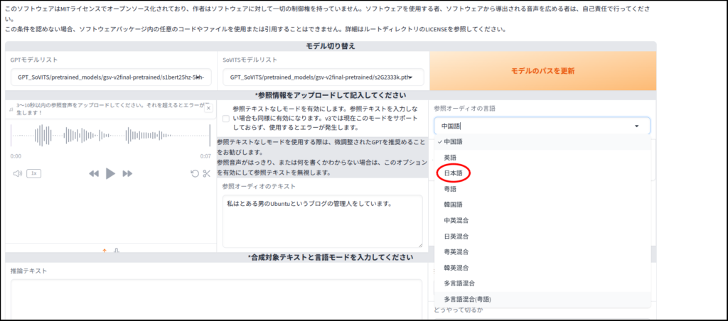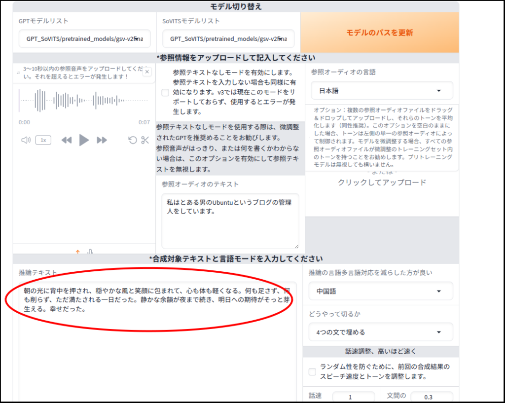 GPT-SoVITS-For-Intelを起動、ゼロショットTTSで喋らせよう