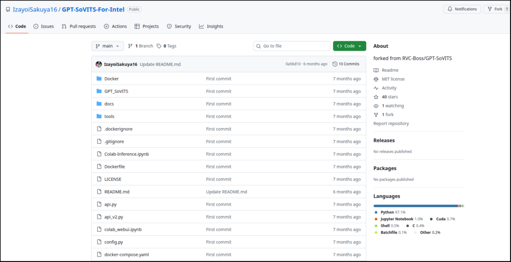 geminiと相談した結果、GPT-SoVITSのフォーク版「GPT-SoVITS-For-Intel」があるとのことで、こちらを利用させてもらうことにしました。