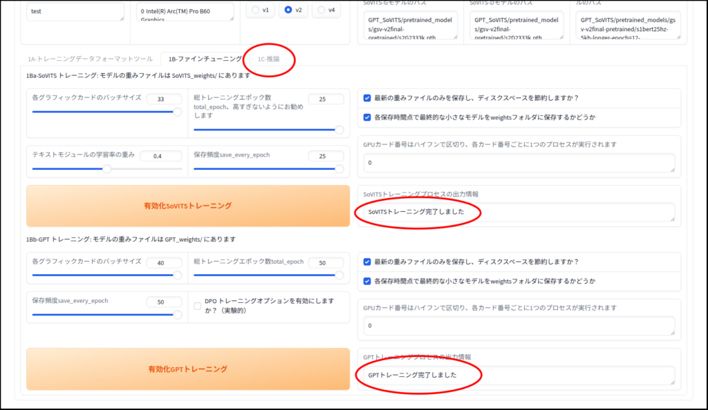 「GPTトレーニング」と「SoVITSトレーニング」について