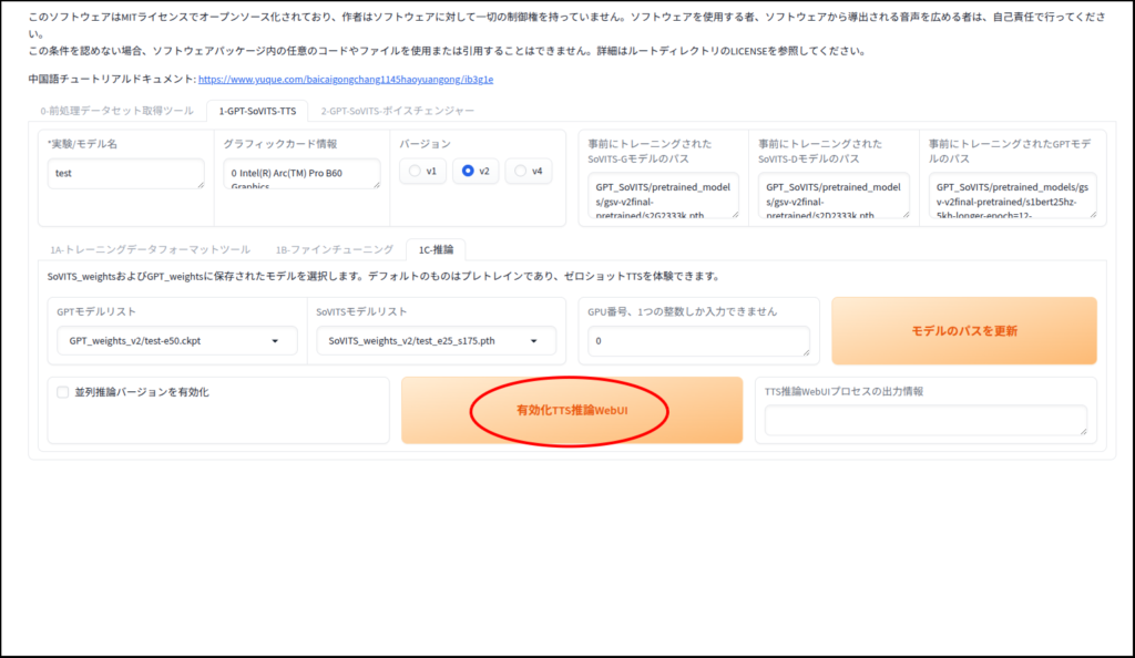 前回の記事でGPT-SoVITS-For-Intelをインストールされた方がもしいらっしゃいましたら、今回のスクリプトでインストールし直してください。
