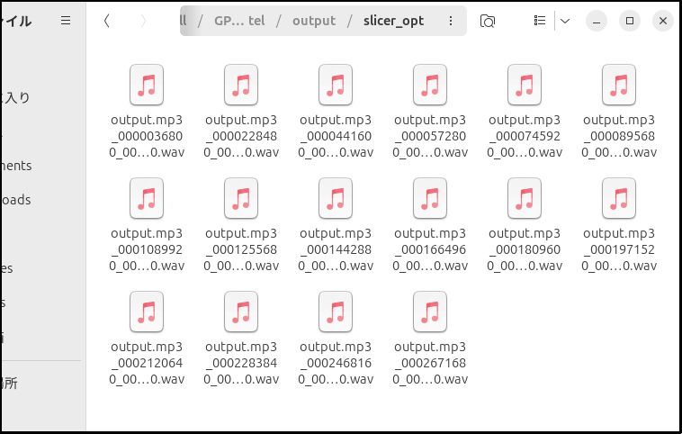 - 1〜2分の音声ファイルを数秒ごとのデータに分割する