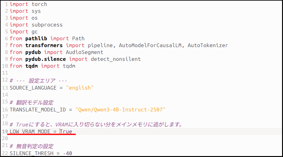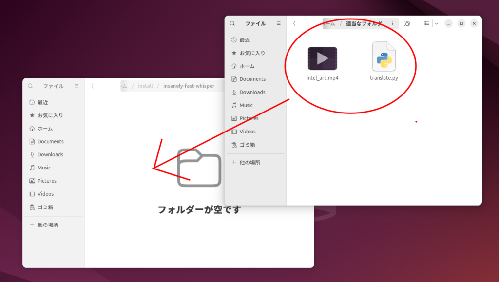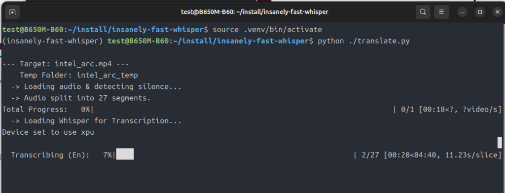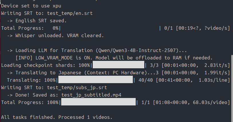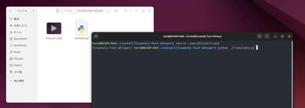 print(f"\nAll tasks finished. Processed {count} videos.")作った「translate.py」を「insanely-fast-whisper」に置く