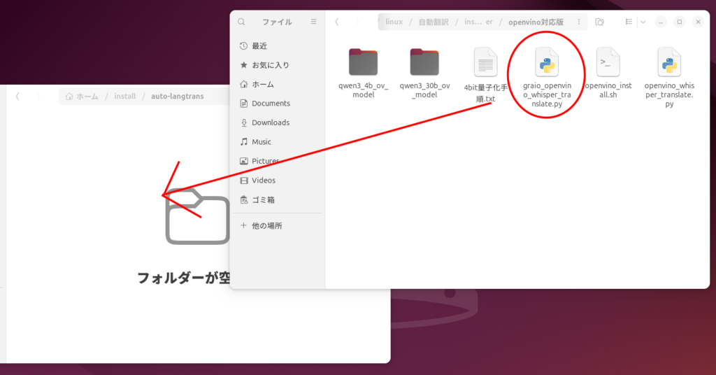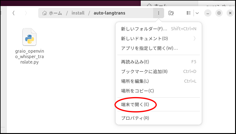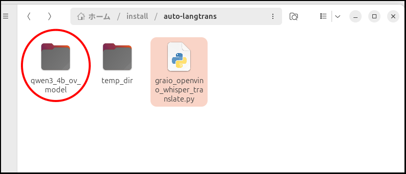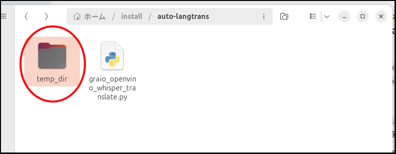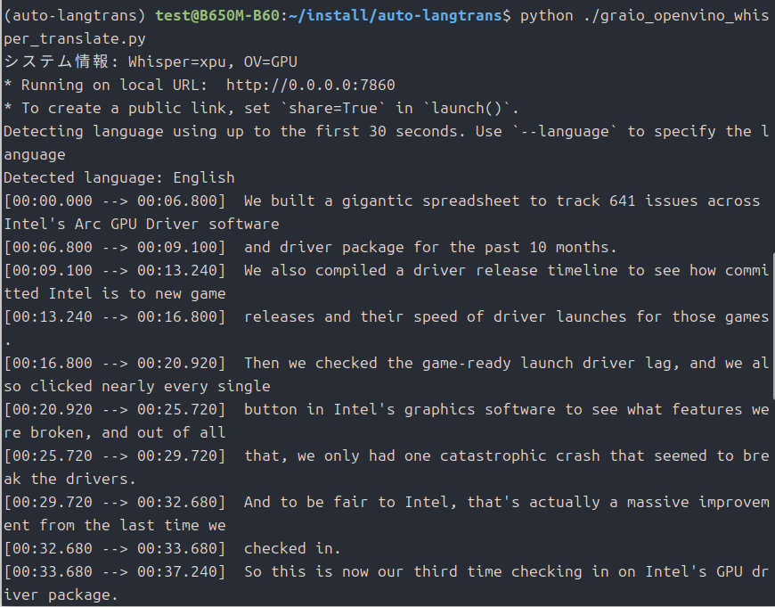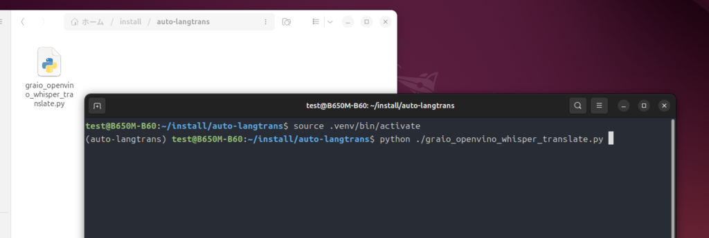 demo.launch(server_name="0.0.0.0", share=False, inbrowser=True)自分は「graio_openvino_whisper_translate.py」という名前で保存していますが、好きに変えてください。
