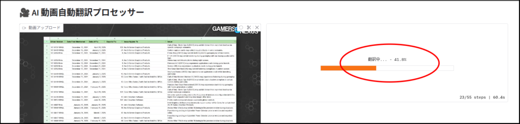 今度は、文字起こしは当ソフトを使い、翻訳をGeminiにやってもらって、元の動画に結合してみました。