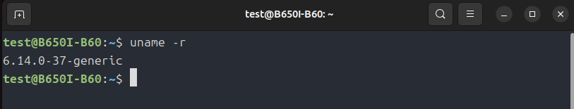 起動後、ターミナルで uname -r を実行し、6.14.0-37-generic と表示されることを確認してください。