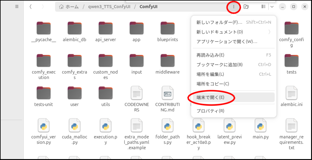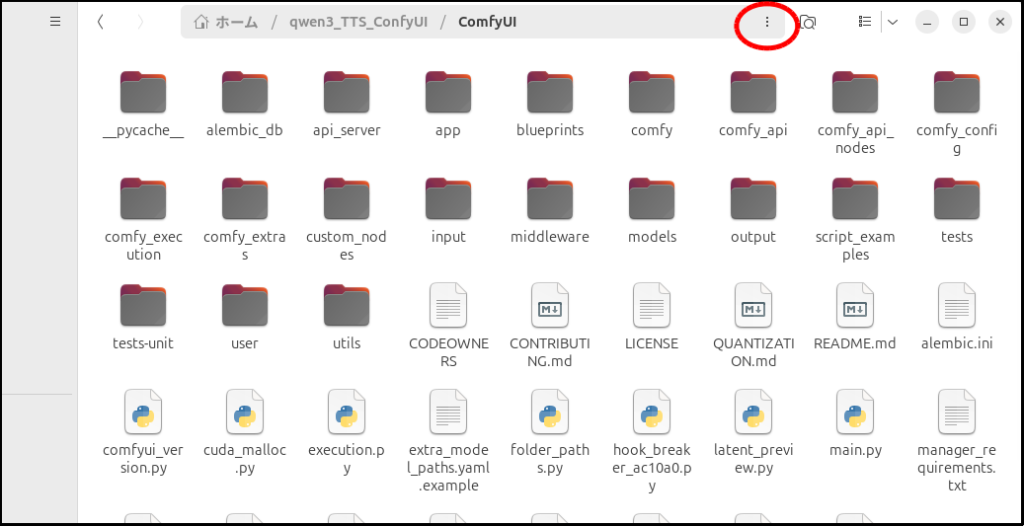 上記リンクからComfyUIをインストールしたあと、ComfyUIのフォルダに移動します。