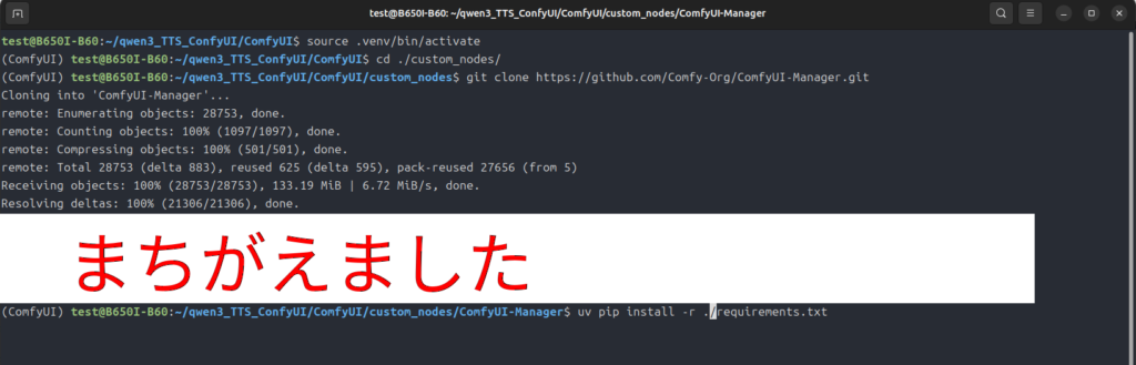 とはいえ、大体のカスタムノードは「ComfyUI-Manager」からインストールできるようになっているはずなので、この手順を使うことはあまりありません。