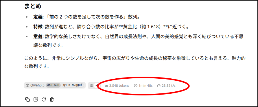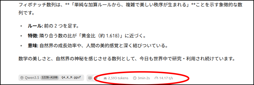 共に「Q4_K_M」に量子化しているモデルですが、ちゃんと答えてくれてます。