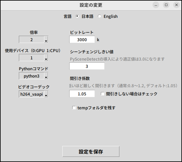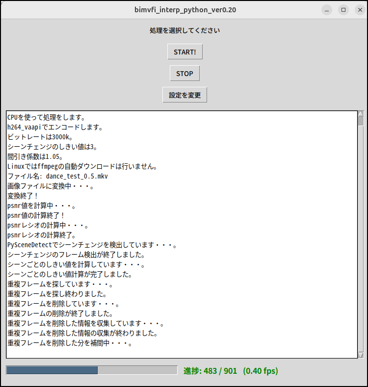 今まではプロセス数を設定できていましたが、BiMVFIは超重い処理なので、並列処理できなくなりました。