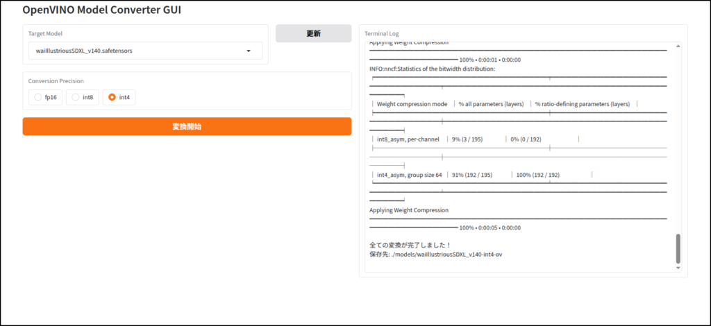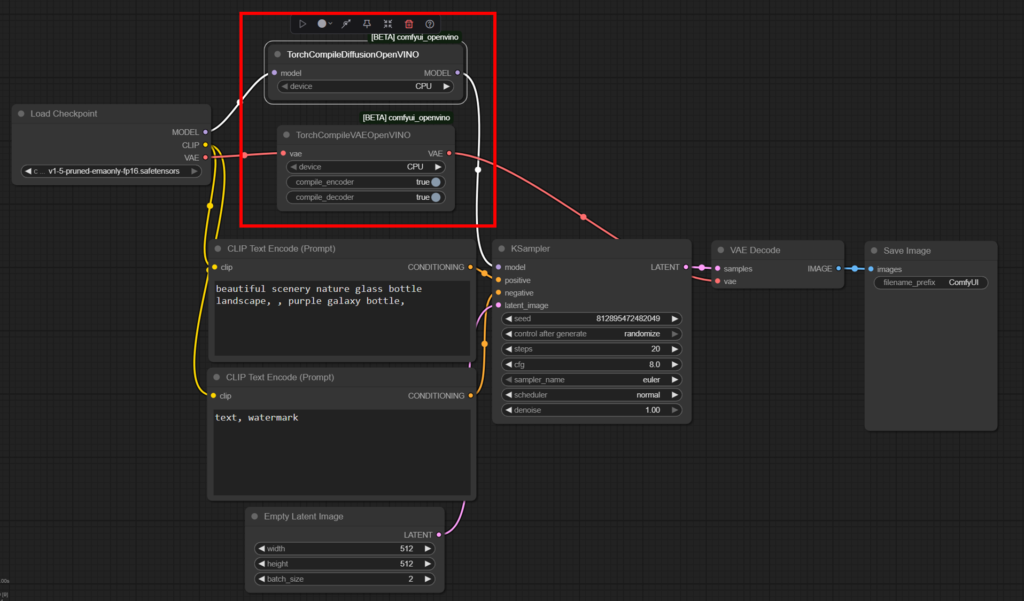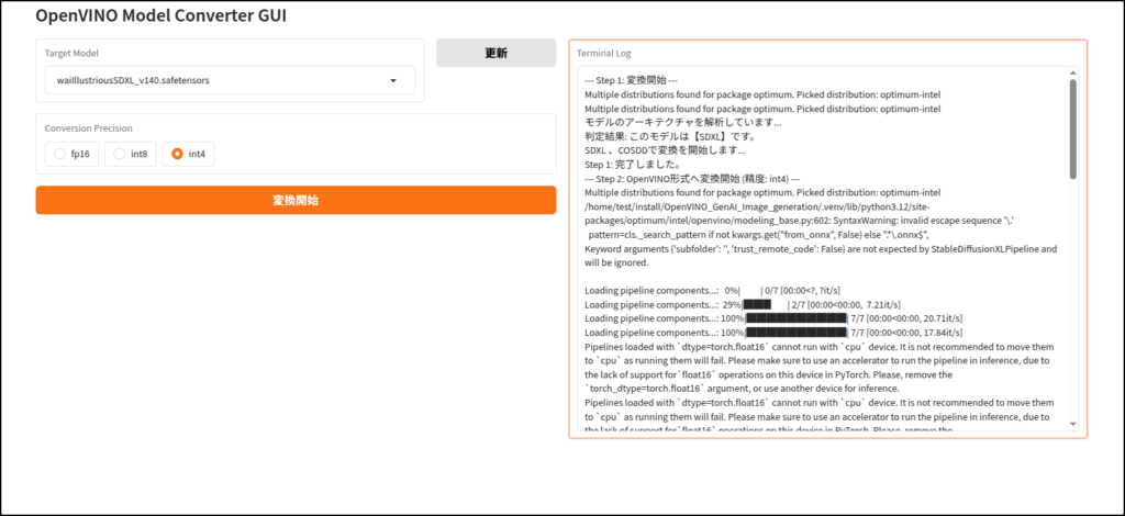 現在ComfyUIでは、一応対応していますが既存のモデルファイルをOpenVINO用にコンパイルして動かすというもののようです。