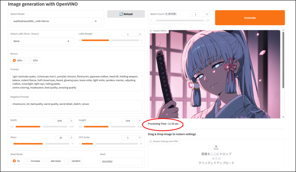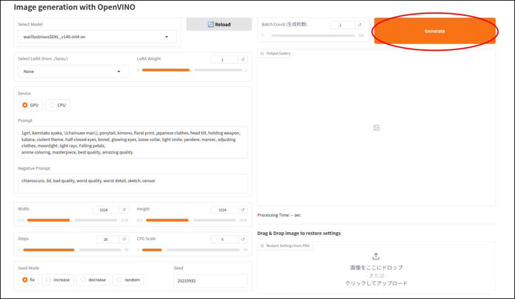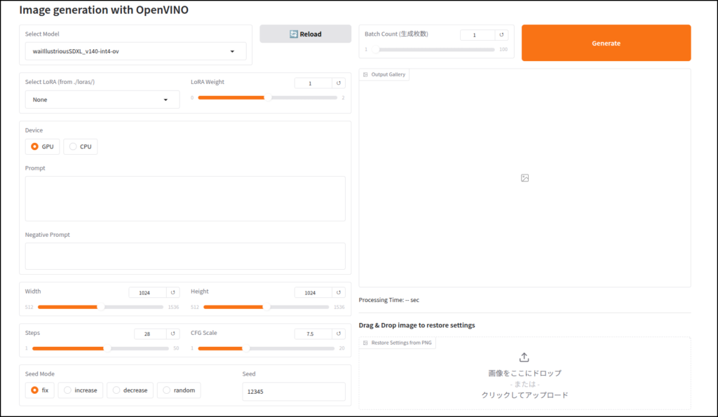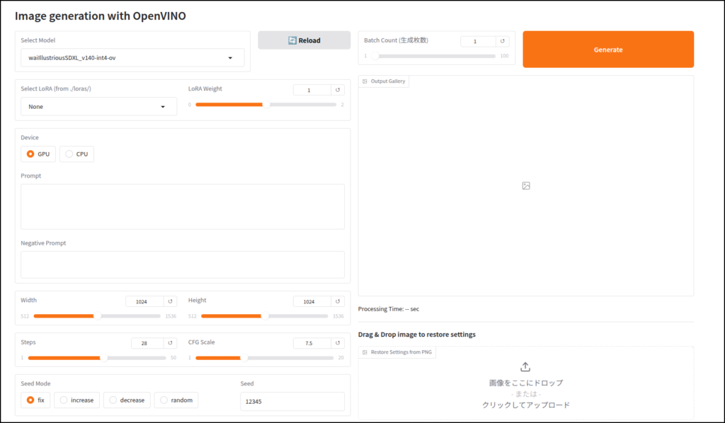 OpenVINOなので、今回もIntel GPUのみの対応です。