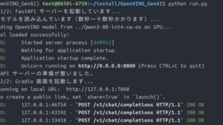 Ubuntu OpenVINO GenAIを試してみた(Ubuntu編) Amazonのアソシエイトとして、当ブログは適格販売により収入を得ています。前回の記事「話題のgemma-4を試してみた」で、llama.cppをvulkanで動かしたら「Radeon RX 470」に「Intel Arc A750」が負け... 2026.04.25 Ubuntu